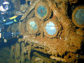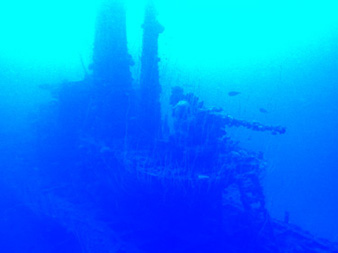 Amazingly, as she came to rest on the bottom the superstructure broke off and now lies fairly intact next to the hull. The bridge where Yamamoto gave the infamous command, "Tora, tora, tora!" is an easy swim through.