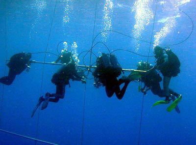 Because these risks are even further magnified by Bikini's remote location, the dive operation uses an elaborate system with an impeccable safety record. Divers at Bikini do their decompression stops on a fixed set of bars and breathe a surface supplied gas rich in oxygen.